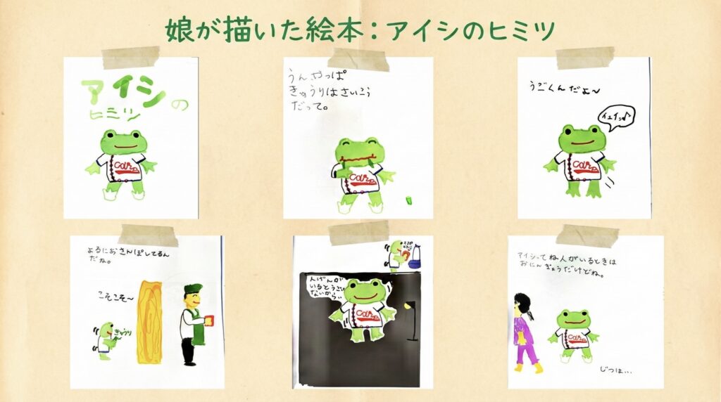 そしてこれは、娘が5歳の時に描いてくれた『アイシのヒミツ』という手作りの絵本です。